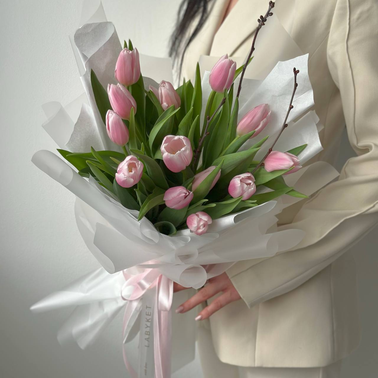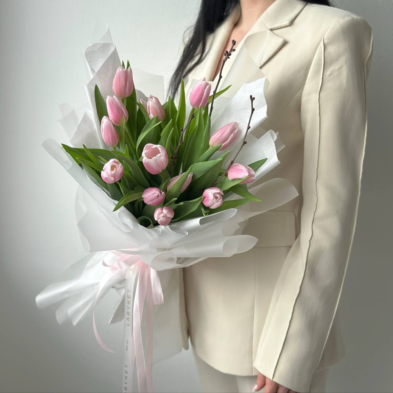 13 розовых тюльпанов
