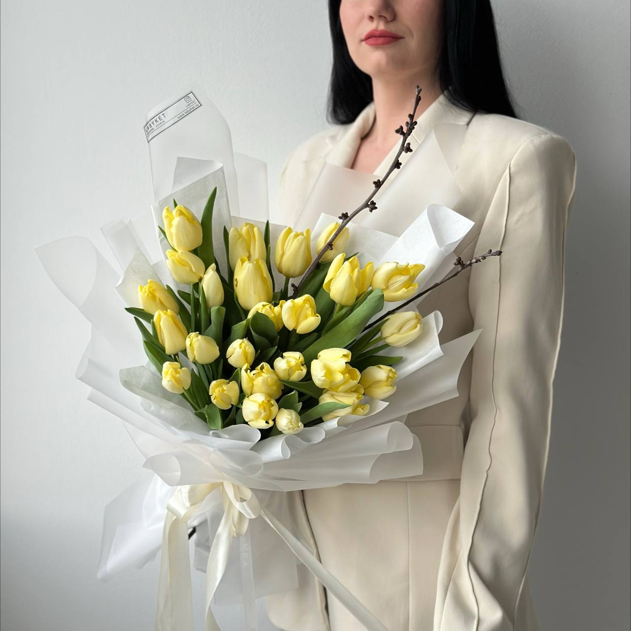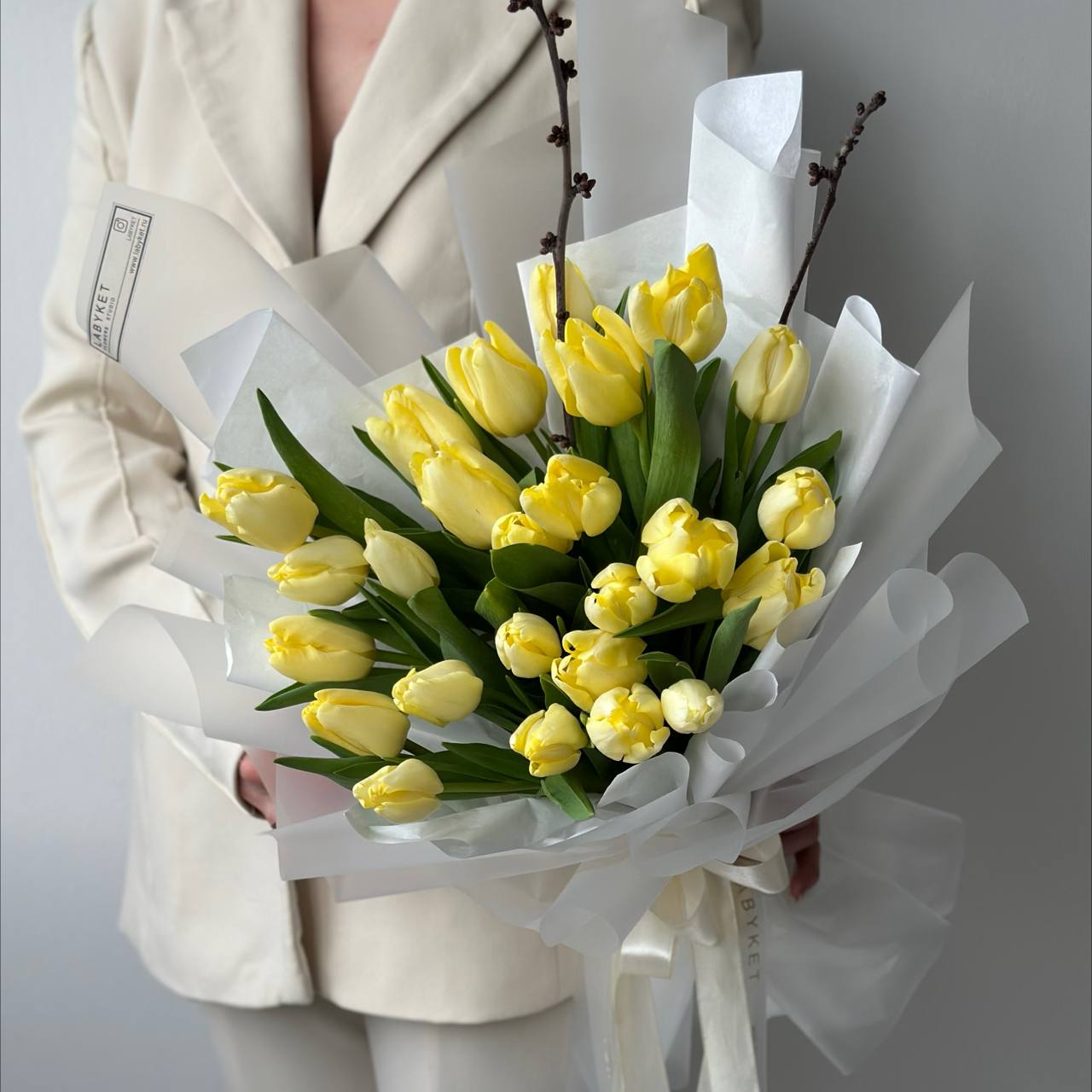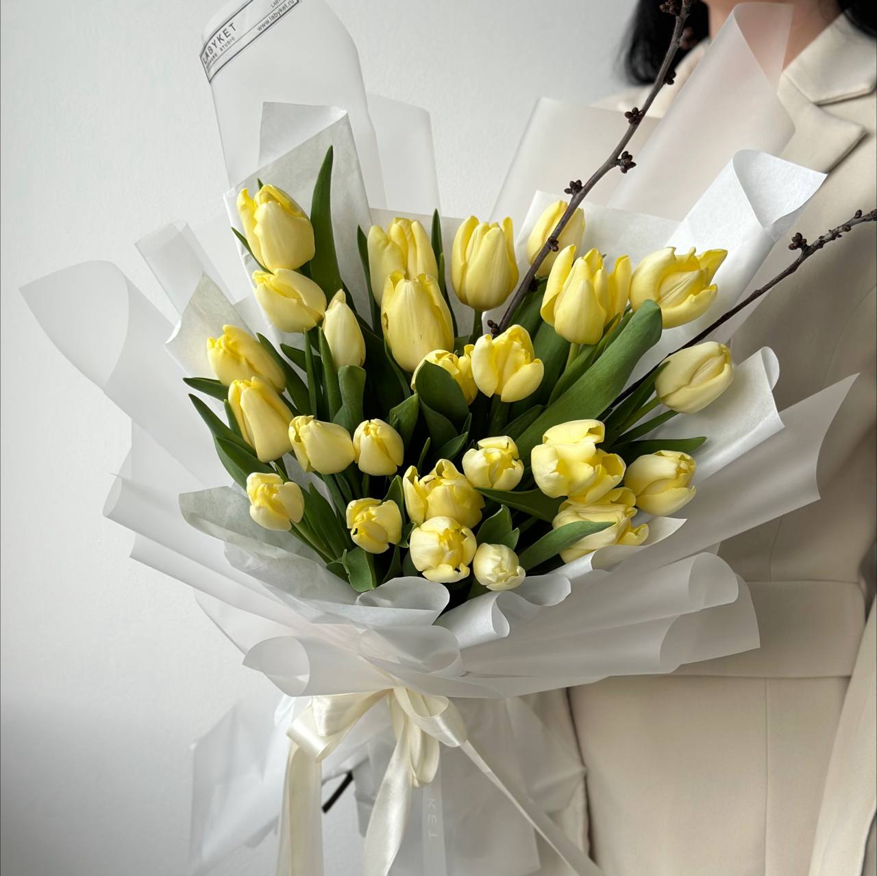 25 лимонных тюльпанов