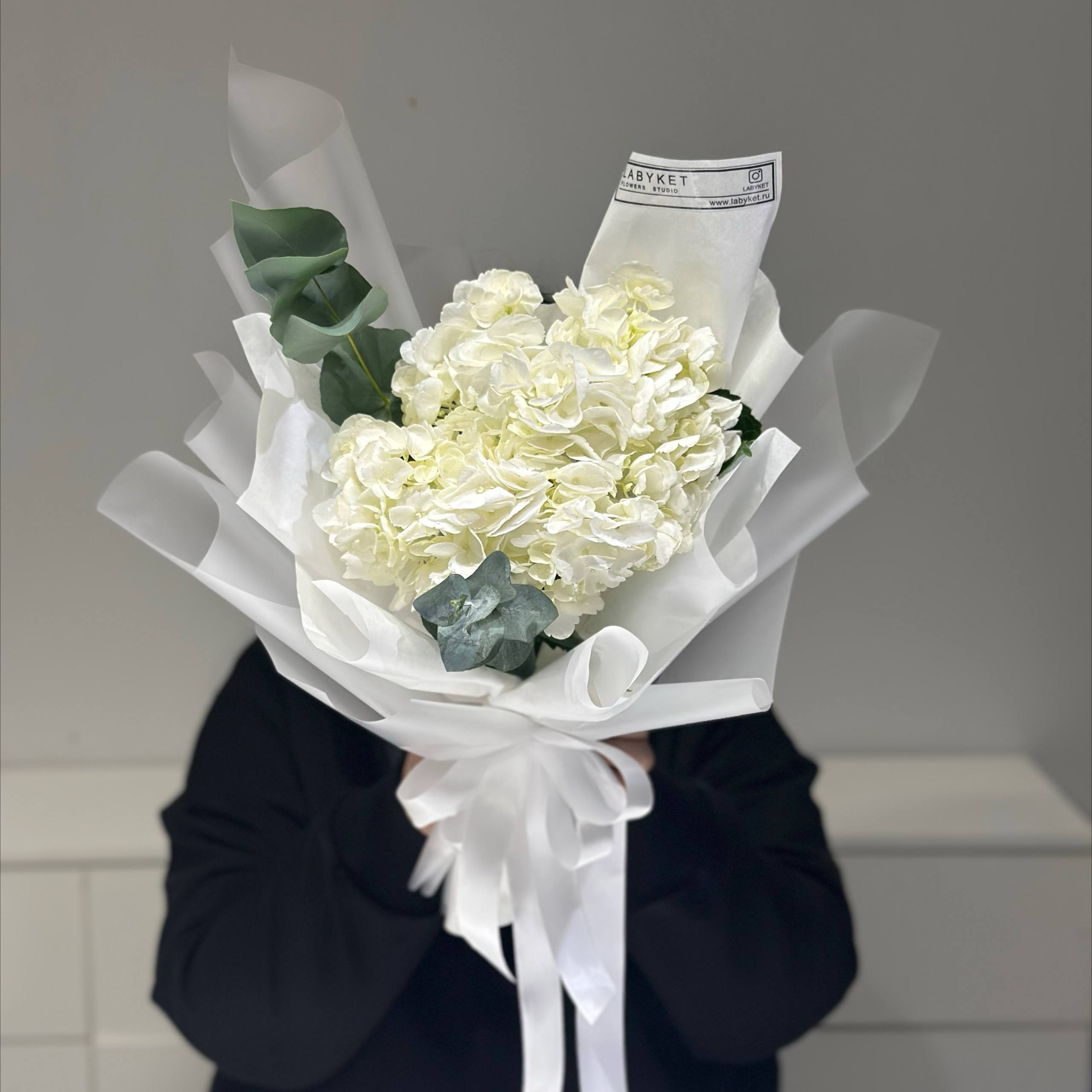 Моно-букет из гортензии станет стильным подарком для любого повода или утончённым украшением интерьера.
