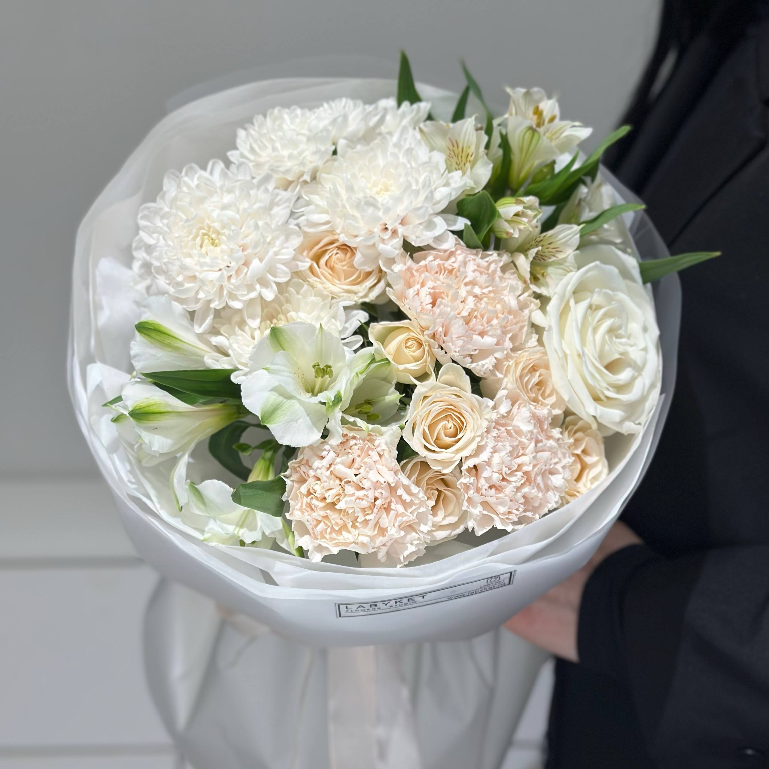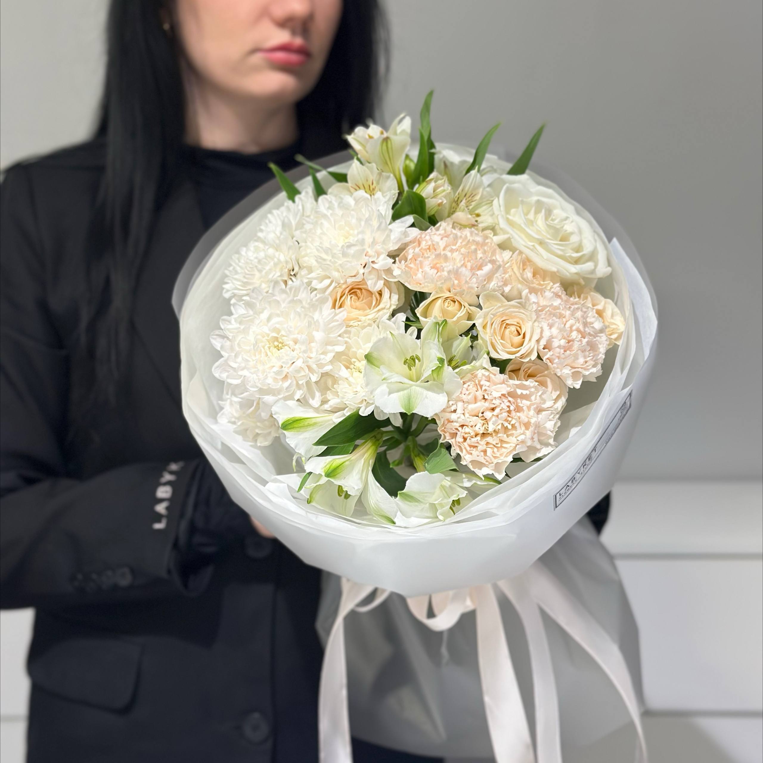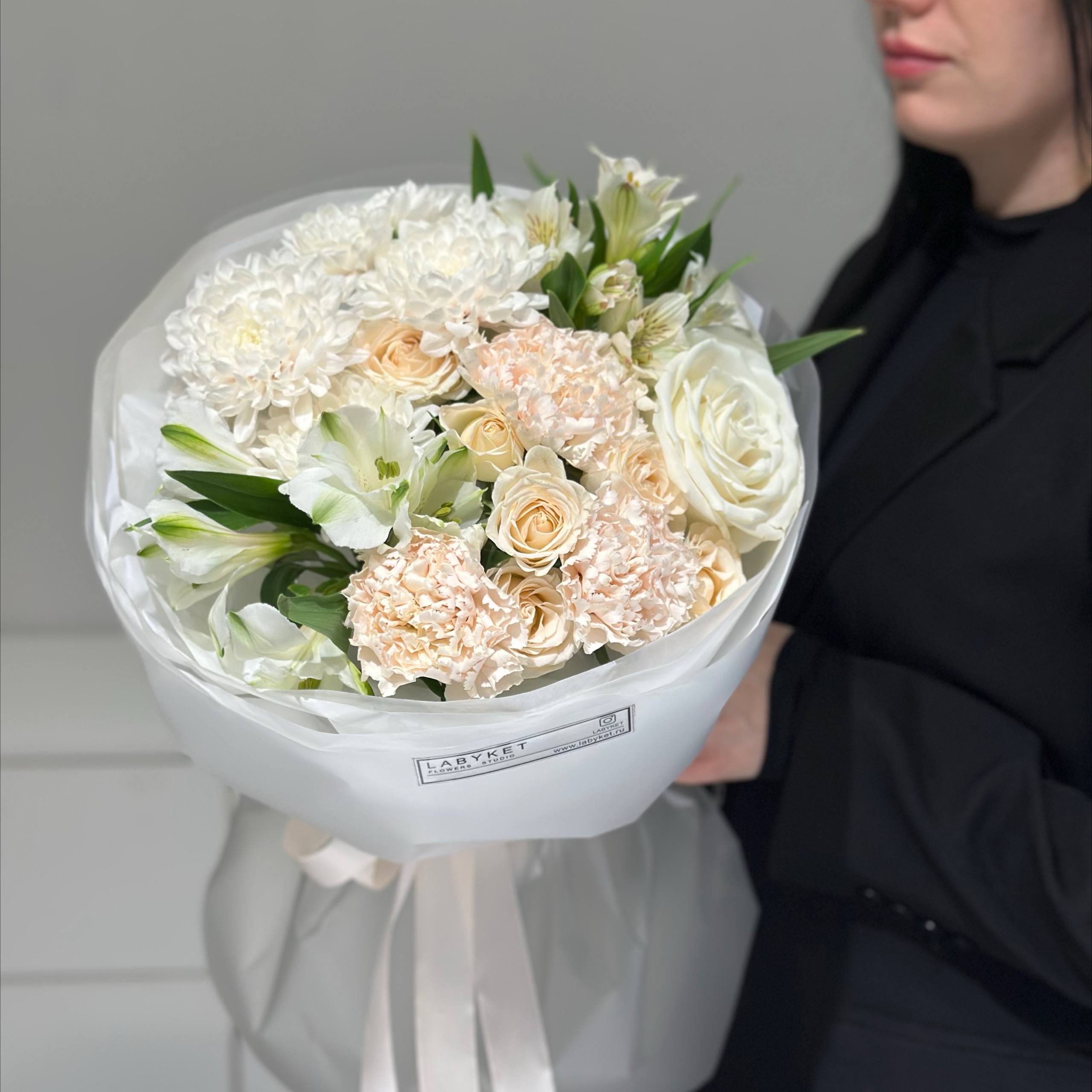 | Цветы | альстромерии, гвоздики, кустовая пионовидная роза, роза, хризантема кустовая |