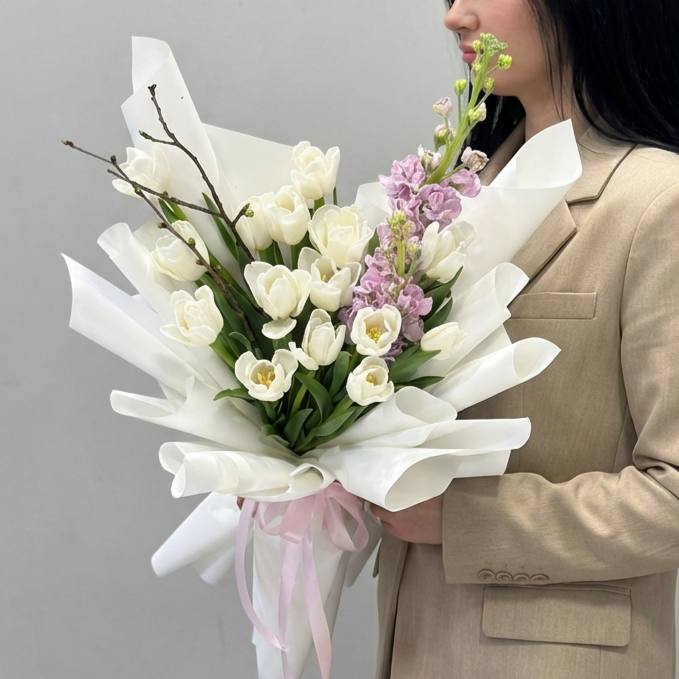 Дуо белые тюльпаны и матиолла