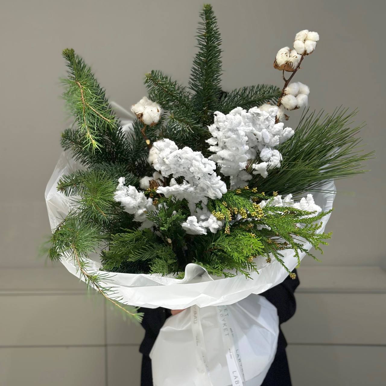 | цветы | нобилис,эвкалипт,можевельник,хлопок,туя.кедр,хлопок,заснеженные ветки |
